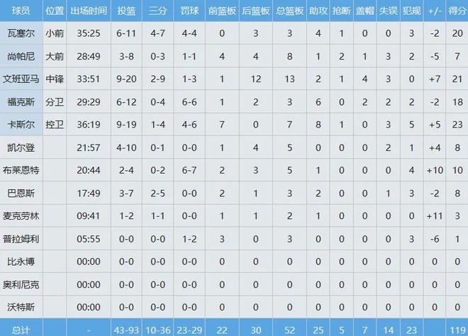 言歸正傳,面對沒有倫納德的快船,馬刺在客場打得異常艱難,好在最終依然可以119-115險勝,卡斯爾23分7板8助進賬,而且7個籃板全部是前場板。