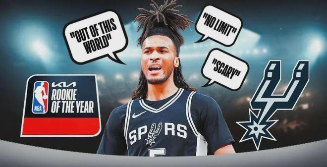 這哥們出生于2004年11月1日,身高1米98&臂展2米06的鋒衛搖擺人,24屆首輪第四號秀,菜鳥賽季以場均14.7分3.7板4.1助當選為最佳新秀,本賽季至今場均貢獻16.7分5.1板7助1.2斷,兩項命中率46.8%與31.1%,已經是馬刺的三當家。