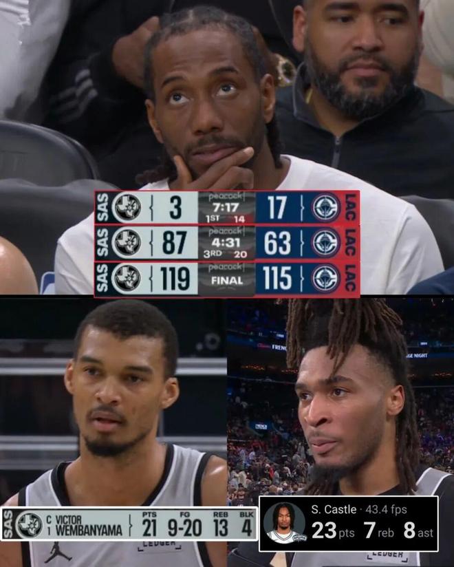 常規賽,馬刺客場119-115戰勝快船。