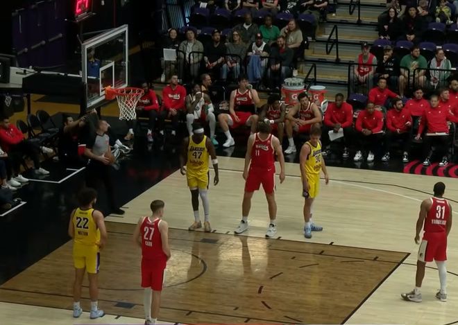 發展聯盟的比賽強度在CBA之上,也有季后賽,南灣湖人22勝8負的戰績排在西部第1位,也是全聯盟勝率最高的球隊。而混音隊16勝15負,排在西部第8位。兩支球隊在2天前有過交手,當時混音以7分之差輸給湖人。楊瀚森在那場比賽中遇到了考驗,湖人隊中鋒球員威廉姆斯又高又壯,給小楊上強度,楊瀚森雖然得到13分7籃板,但也有5次失誤5次犯規,正負值全場最低。