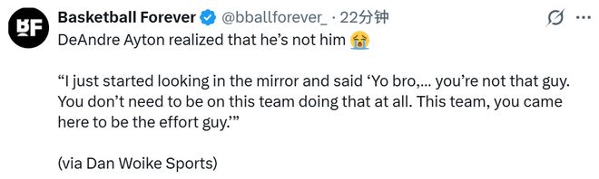 “我開始對著鏡子告訴自己:‘兄弟,你不是那個角色。在這支球隊里,你完全不需要做那種事。’”他解釋道,“你來這支球隊,就是要做那個拼盡全力的人,做好防守終結、搶籃板,玩命跑快攻,讓對面的內線累到不行,讓對面的巨星打得難受。說實話,我現在很享受這個過程。”