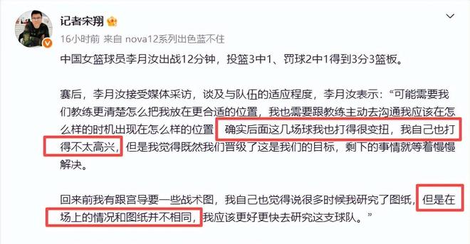 而中鋒李月汝賽后那句直白坦言,宛如一聲清脆的哨響,劃破了表面平靜,讓所有關(guān)注者心頭一震。