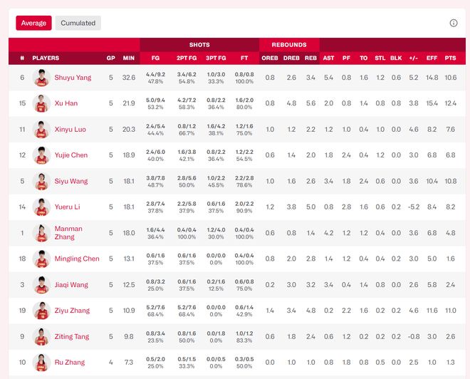 張子宇場均10.9分鐘全隊倒數第三,但場均11分全隊第二,命中率68.4%也是全隊第一,場均4.8籃板全隊第三,18歲的張子宇已經是這支球隊的真正核心。