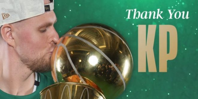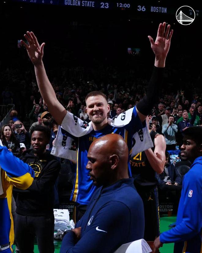 凱爾特人主場播放視頻致敬前總冠軍成員波爾津吉斯,主場球迷熱烈歡迎致意。