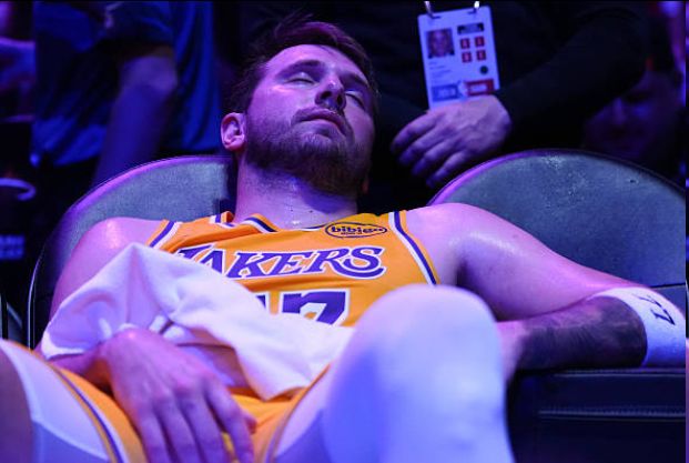 在本場比賽場邊,東契奇癱坐在椅子上說道:“我太XX累了!”