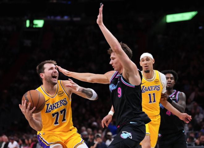 但節(jié)末希羅和阿德巴約繼續(xù)外線轟炸,頂住湖人這一波沖擊,半場湖人59-65熱火。第三節(jié)湖人終于發(fā)力,東契奇連續(xù)轟三分球,艾頓勾手也中,湖人瞬間反超!此后斯馬特和阿德巴約外線對狙,湖人沒給熱火拉扯的機會,老詹和里夫斯相互喂餅,艾頓接球上籃,斯馬特造三分犯規(guī),湖人一波流拉開10分分差。后半段鮑威爾和希羅承擔(dān)起熱火進攻重任,雙方陷入拉鋸戰(zhàn)。三節(jié)打完時,湖人97-88領(lǐng)先熱火。決戰(zhàn)第四節(jié),熱火發(fā)力,鮑威爾聯(lián)合阿德巴約一路追分,湖人甚至出現(xiàn)24秒進攻違例。