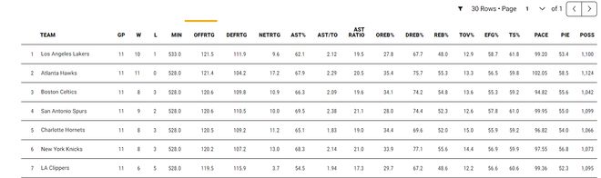 湖人最近的11場比賽拿到10勝,進攻效率121.5聯盟第一,防守效率111.9聯盟第十,所以這支湖人還是依靠東契奇、里夫斯、詹姆斯三核驅動以進攻制勝。