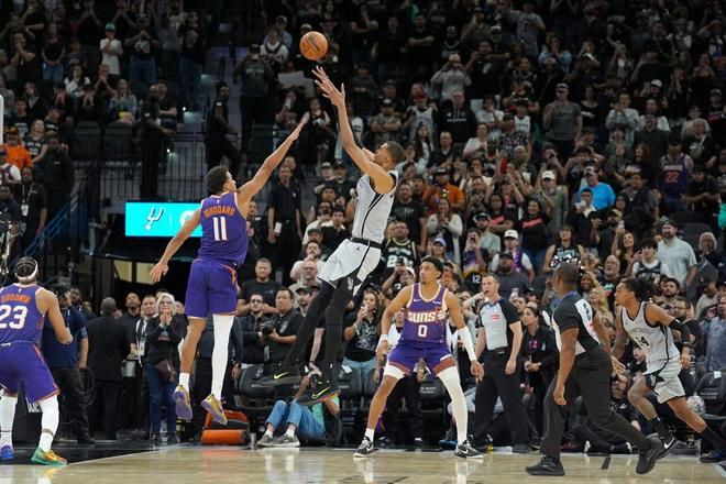 ——剩下1分鐘前,瓦塞爾底線三分不進,文班亞馬搶下進攻籃板造成犯規,兩罰全中