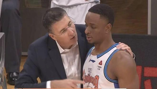 第二節(jié)比賽,新疆派出雙大外馬上出現(xiàn)進攻停滯,被深圳用連續(xù)轉換加三分球將分差拉大到兩位數(shù),納托爾被提前逼出,這個調(diào)整也意味著新小外布伊今天肯定不會出場。
