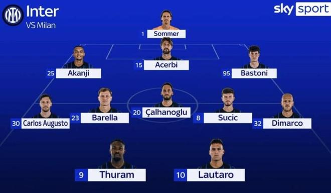 索默;阿坎吉、阿切爾比、巴斯托尼;卡洛斯-奧古斯托、巴雷拉、恰爾汗奧盧、蘇契奇、迪馬爾科;馬庫斯-圖拉姆、勞塔羅