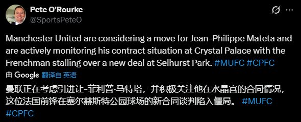 記者Pete O'Rourke透露:“曼聯正在考慮引進馬特塔,并積極關注他在水晶宮的合同情況,這位法國前鋒同水晶宮的新合同談判陷入僵局。”實際上,水晶宮正面臨著嚴重的人員流失風險。過去一年,水晶宮的出色發揮令多名主力成為轉會市場香餑餑。夏窗埃澤已轉投阿森納;馬克·格伊合同臨近到期,夏窗差點加盟利物浦,預計下個夏窗自由離隊。
