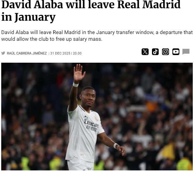 若交易成行,皇馬將在調整薪資結構、為未來關鍵運作奠基的戰略上再進一步。而阿拉巴也將成為皇馬冬窗離隊第二人。此前,19歲的巴西前鋒恩德里克已經租借去到了法甲里昂。加盟皇馬5個賽季,阿拉巴出戰120場比賽,為球隊贏得2次歐冠冠軍、1次世俱杯冠軍和2座西甲冠軍。即使離開,他已是皇馬傳奇。