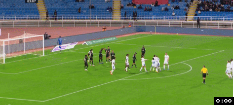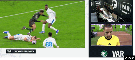 人數占優的利雅得新月直到上半時最后1分鐘才抓住機會,利雅得新月左路壓上,利物浦舊將努涅斯禁區角上拿球強行突破2人包夾殺入禁區倒三角回傳,米林科維奇禁區弧頂處接球往前調整一步右腳大力兜射,皮球直入球門左下死角,利雅得新月1:0打破僵局。僅僅2分鐘后,上半時補時階段,拉斯永恒左路快速反擊,謝赫里突入禁區晃開防守被回防的米林科維奇鏟倒,主裁在VAR確認后,認定米蘭科維奇鏟球時手碰到了球,吹罰了點球。恩里克操刀主罰一蹴而就,拉斯永恒半場壓哨破門1:1快速扳平比分。