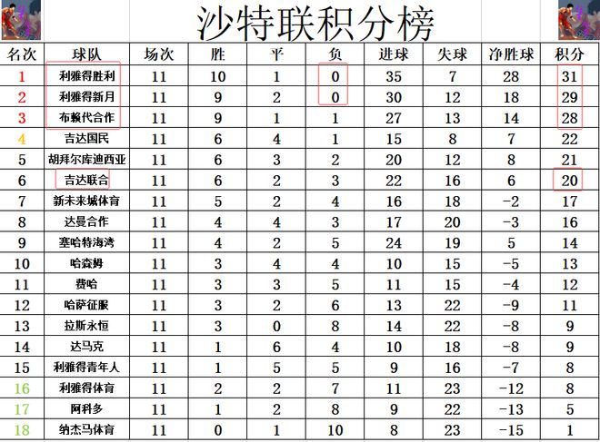 積分榜方面,利雅得勝利客場贏球后奪取8連勝,超過布賴代合作1分重回前2,將和榜首的利雅得勝利分差縮小到只差2分,冠軍爭奪是越來越激烈。衛冕冠軍吉達聯合今天也贏球了,但是他們還差前3有8分之多。