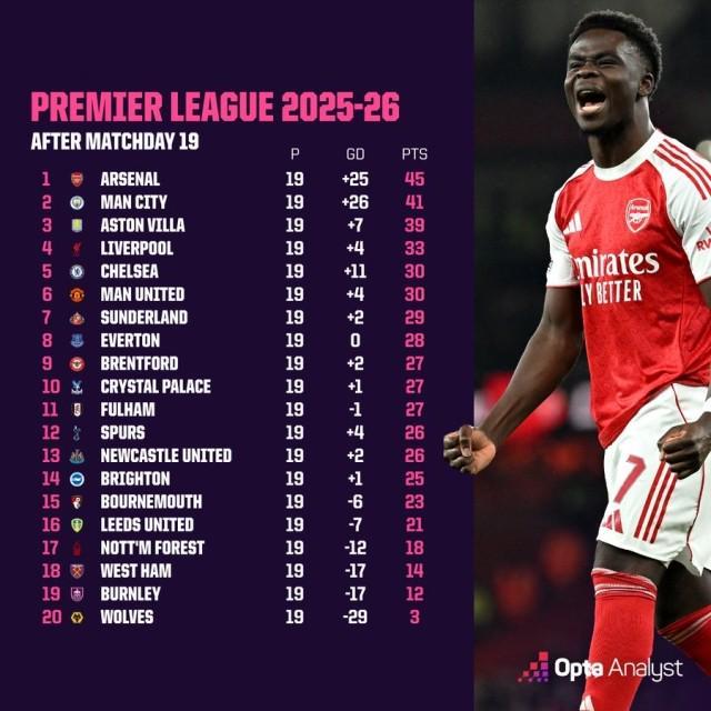 桑德蘭主場0比0戰平曼城,英超半程戰罷(19輪),阿森納以4分優勢成為半程冠軍(由于賽程關系,槍手已2戰維拉,和伯恩茅斯未曾交手,巧合的是,這3隊主帥阿爾特塔、埃梅里、伊勞拉都是巴斯克人)。 本賽季英超聯賽中,迄今只有兩支球隊保持主場不敗,分別是阿森納(9勝1平0負)和桑德蘭(5勝5平0負)。桑德蘭本賽季在光明球場已經比他們上一次參加英超(2016-17賽季)時多拿了6分,當時他們整個賽季19個英超主場只拿到了14分。
