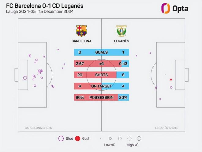 尤其以主場0比1不敵萊加內斯為例,當時巴薩預期進球高達2.67,對手預期進球僅有0.43,結果就是對方偷襲成功,讓巴薩在主場飲恨。
