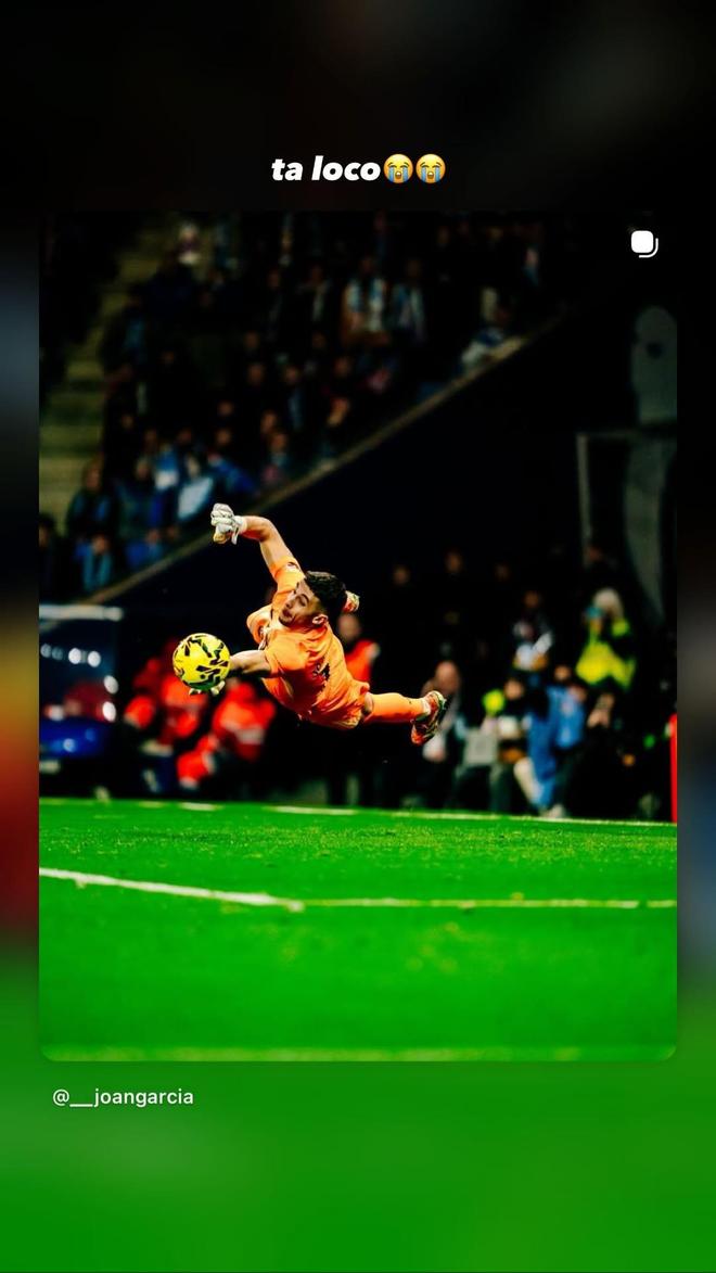 賽后,亞馬爾更新社交媒體動態(tài),曬出了霍安-加西亞的撲救照片,配文寫道:“他瘋了”,并艾特了加西亞本人。