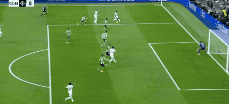 下半場(chǎng)開始僅僅5分鐘,接到巴爾韋德的傳中,貢薩洛·加西亞停球射門一氣呵成,皮球直入死角。