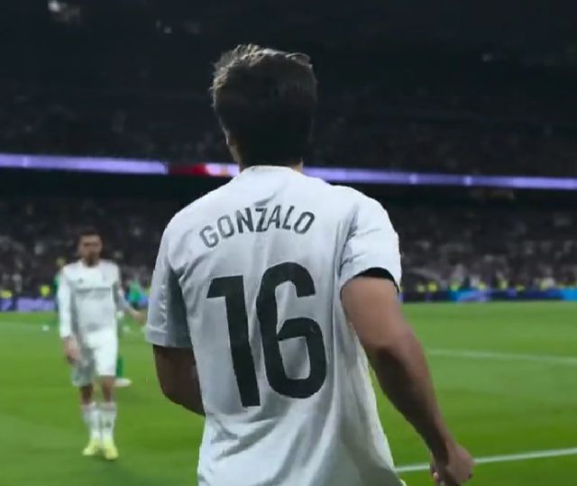 這2個進球,已經讓現場的球迷和場邊的阿隆索拍手叫絕,但是相比之下,貢薩洛-加西亞的第3個進球,更是讓人嘆為觀止。第82分鐘,居萊爾在禁區內橫傳到門前,貢薩洛-加西亞竟然用腳后跟把球磕進死角,這樣匪夷所思的進球,伯納烏已經多時未見,這絕對是一個足以競爭本賽季西甲最佳進球的進球。