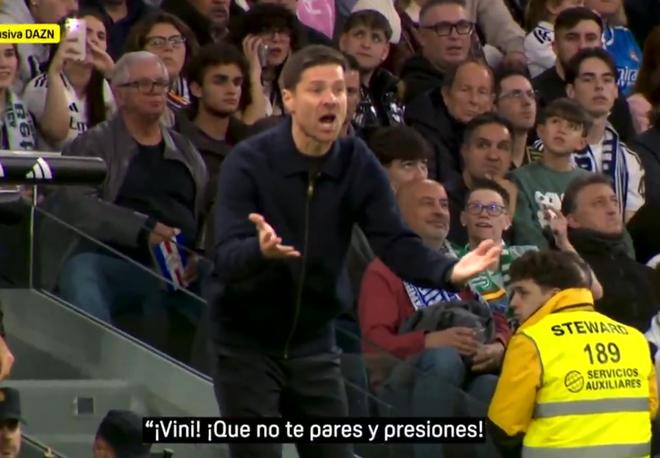 比賽進行到第67分鐘(當時比分為3-1),轉播鏡頭捕捉到阿隆索因不滿維尼修斯在前場逼搶皇家貝蒂斯出球時的投入程度而顯得情緒激動。他從技術區向這位巴西邊鋒大聲喊話,要求其施加更大壓力。