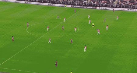 第38分鐘,畢爾巴鄂后防線又一次被打穿,拉菲尼亞直面西蒙,一腳爆射,皮球直掛死角。