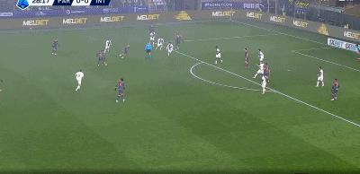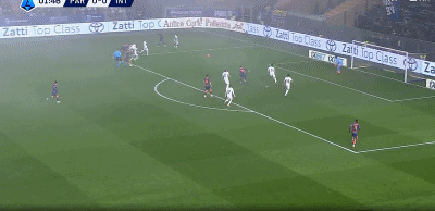 第17分鐘,迪馬爾科傳中,勞塔羅頭球高出