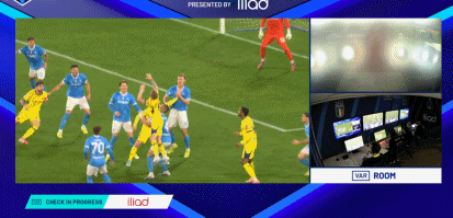 第77分鐘,那不勒斯通過定位球破門,因越位在先被判無效