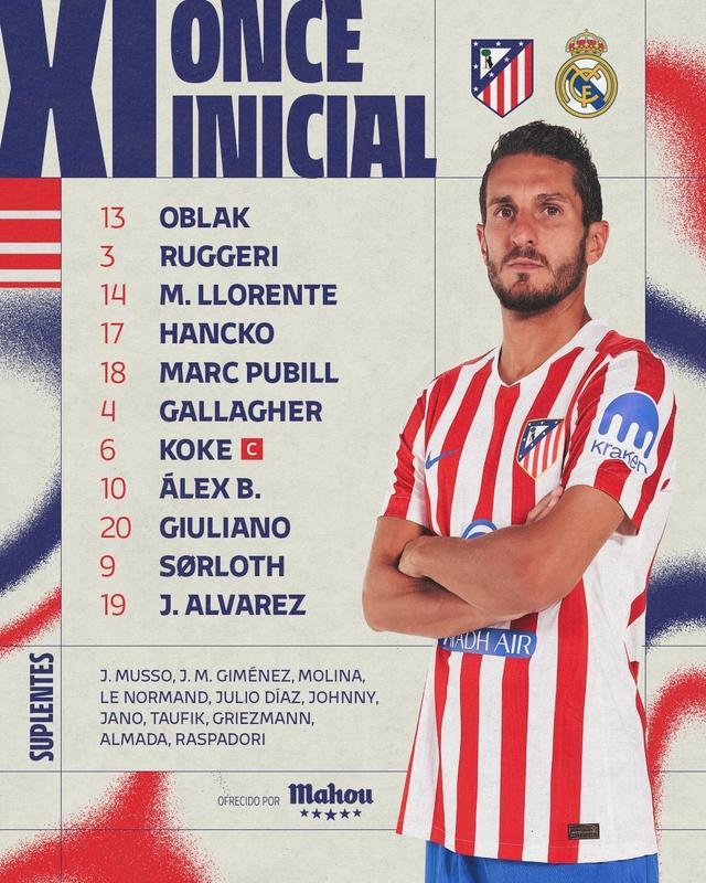 馬競首發:13-奧布拉克、3-魯杰里、17-漢茨科、18-普維爾、14- 馬科斯-略倫特、4-加拉格爾、6-科克、10-巴埃納、20-小西蒙尼、9-瑟洛特、19-阿爾瓦雷斯