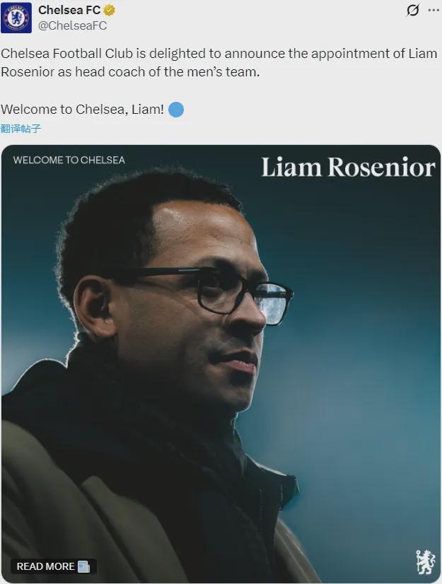 官方:切爾西宣布任命利亞姆-羅塞尼爾為主帥,雙方簽下了一份2032年到期的長合同。