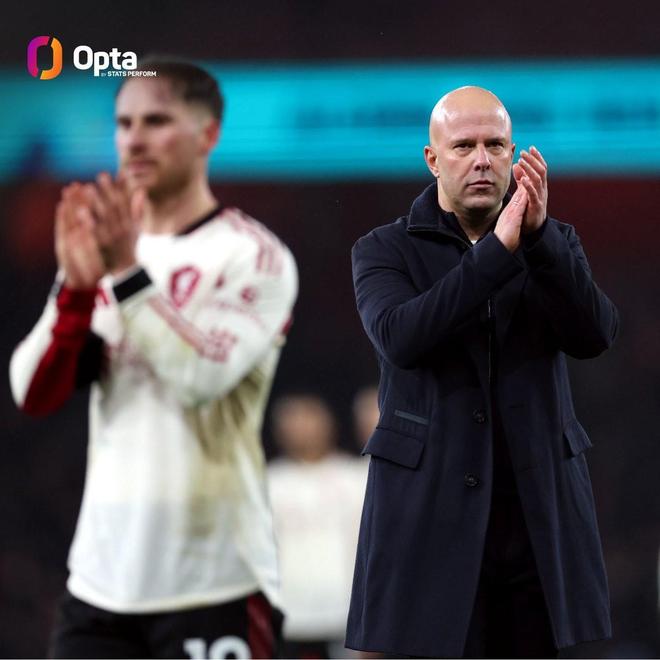 據Opta統計,斯洛特是唯一一位與阿爾特塔前4次交手保持不敗的主教練。