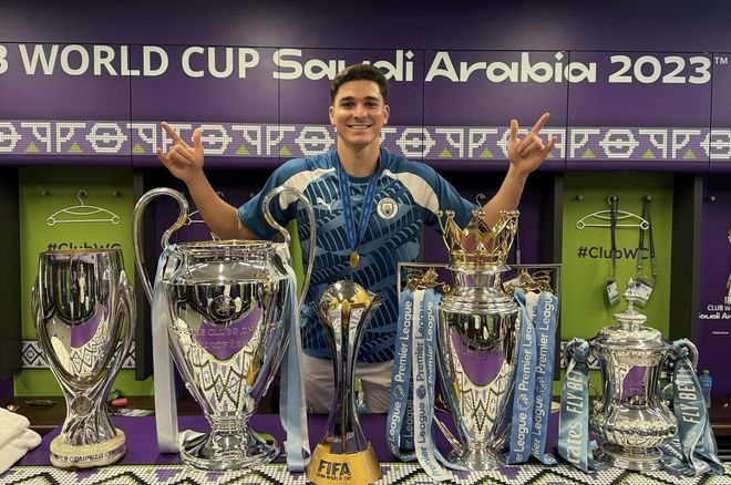 阿爾瓦雷斯有世界杯冠軍,有2座美洲杯,還有歐美杯冠軍,在阿根廷4連冠,在曼城獲得歐冠,英超2連冠,生涯早早實現大滿貫,但在馬競呢?個人數據不錯,上賽季29球8助,本賽季目前11球5助,但帶不動馬競啊,成了空砍帝。論一個好平臺的重要性,凱恩離開熱刺在拜仁連續摘冠,阿爾瓦雷斯加盟馬競成了“熱刺時期的凱恩”,1億歐元身價在馬競好像屈才了。
