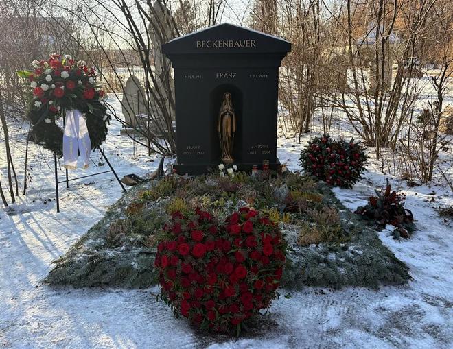 上周三,貝肯鮑爾迎來逝世兩周年紀念日。這位德國足協(xié)與拜仁慕尼黑的后防傳奇人物,同時也曾效力于漢堡和紐約宇宙隊,于2024年1月7日在家人陪伴下于家中安然離世,享年78歲。《圖片報》在貝肯鮑爾去世兩周年當天探訪了位于慕尼黑佩拉赫森林公墓的墓地。在巨大的黑色墓碑旁、祈禱姿態(tài)的青銅圣母像左側(cè),擺放著一枚由紅白色鮮花組成的新花圈。花圈上的挽聯(lián)顯示獻花者為德國足球協(xié)會,上書:“謹致崇高敬意——德國足球協(xié)會”。