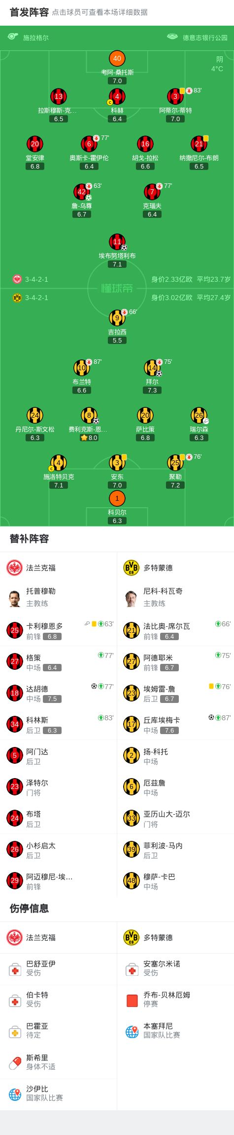 北京時(shí)間1月10日,德國(guó)足球甲級(jí)聯(lián)賽第16輪展開(kāi)較量,法蘭克福坐鎮(zhèn)主場(chǎng)迎戰(zhàn)多特蒙德。上半場(chǎng),拜爾率先破門(mén)。吉拉西送點(diǎn),烏尊主罰命中。下半場(chǎng),恩梅加破門(mén),不過(guò)埃布努塔利布很快便通過(guò)單刀扳平比分。補(bǔ)時(shí)階段,達(dá)胡德破門(mén)弒舊主。讀秒階段,丘庫(kù)埃梅卡破門(mén)反絕平。全場(chǎng)比賽結(jié)束,多特3-3戰(zhàn)平法蘭克福。