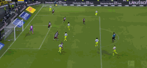 第80分鐘,法蘭克福門(mén)將出擊將球打到蒂特身上,差點(diǎn)形成烏龍