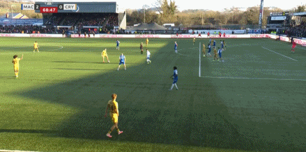 久攻不下情況下,水晶宮后防線卻在防守定位球時漏人。第43分鐘,道森搶點破門,麥克斯菲爾德1-0領先。