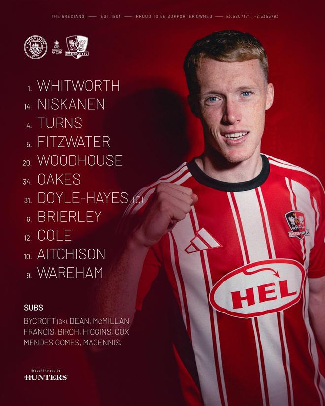 北京時(shí)間1月10日23:00,足總杯第3輪,曼城對(duì)陣埃克塞特城。賽前雙方首發(fā)陣容陸續(xù)公布: