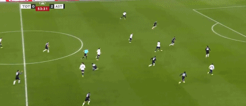 第45+3分鐘,布恩迪亞腳后跟做球,羅杰斯破門,維拉2-0熱刺
