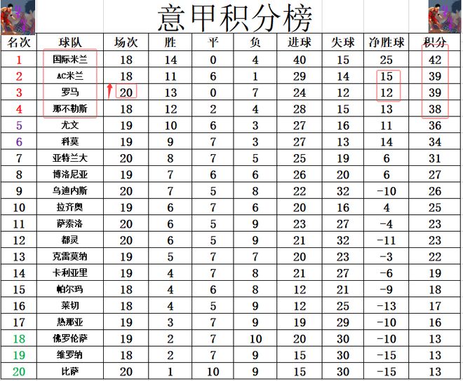 積分榜方面,國米3分優勢繼續領跑,羅馬今天贏球后,多賽2場的情況下,超過尤文,那不勒斯,追上AC米蘭,凈勝球劣勢排在第3。黑馬科莫無力擊敗博洛尼亞,他們就錯失超過尤文升進前5的機會。