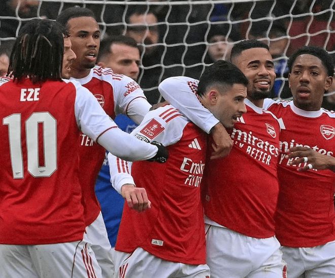 阿森納首發(fā):13-凱帕、4-懷特(69'12-廷貝爾)、16-內爾高、6-加布里埃爾(76'89-薩爾蒙)、49-斯凱利、10-埃澤、23-梅里諾、22-恩瓦內里(69'8-厄德高)、20-馬杜埃凱、11-馬丁內利(82'36-蘇比門迪)、9-熱蘇斯(69'29-哈弗茨)