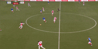 第51分鐘,熱蘇斯橫傳,馬丁內利鏟射破門梅開二度,阿森納3-1樸茨茅斯。