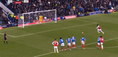 第3分鐘,查普林射門被撲,畢曉普補射破門,阿森納0-1落后樸茨茅斯!