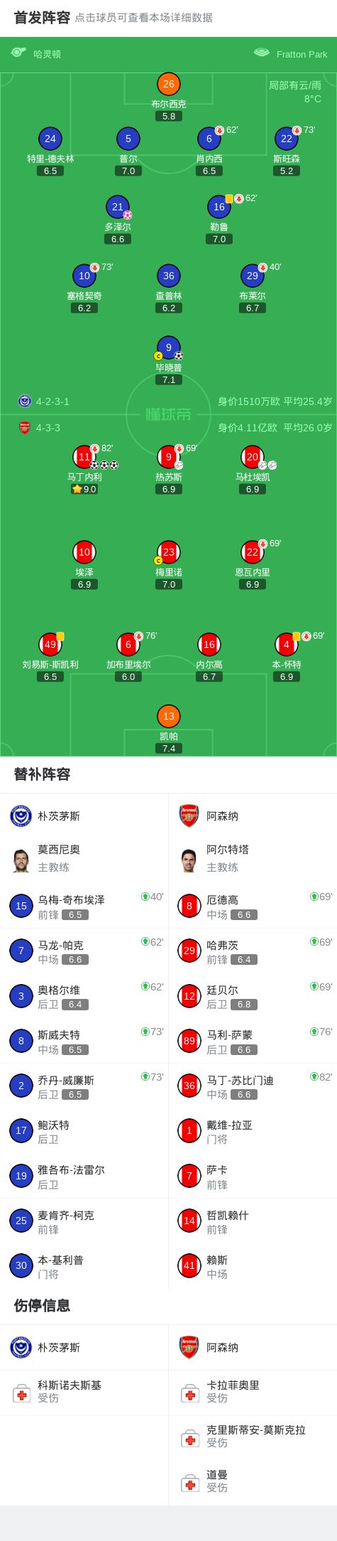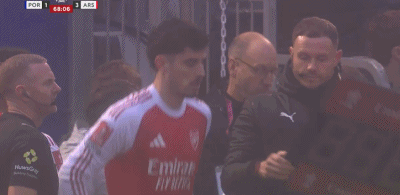 第69分鐘,阿森納連換3人,哈弗茨、廷貝爾和厄德高替補登場