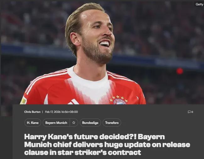 赫內斯說:“我希望澄清這件事。凱恩合同中允許他今夏離隊的違約金條款已經到期,現在他的合同將在2027年夏天到期,所以我們目前沒有任何壓力了。”