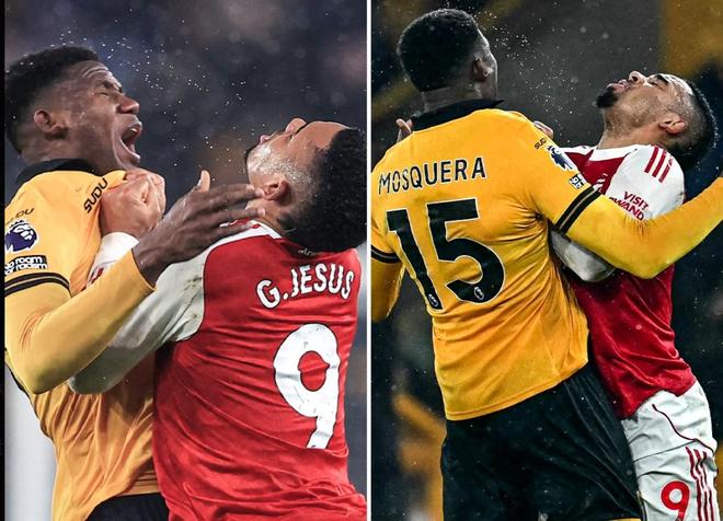 在這場跌宕起伏的英超平局賽后狼隊與阿森納的球員爆發了沖突,熱蘇斯本來倒地不起,聽到終場哨響后跳起來和對手爆發肢體沖突。