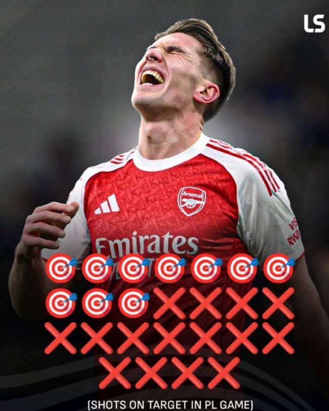 他一共踢了25場英超聯賽,結果0射正場次達到15場。他在英超聯賽一共打入8球,其中2球來自點球,還有不少是隊友送出的空門或準空門機會。這筆引援的失敗,成為了阿爾特塔的致命傷。