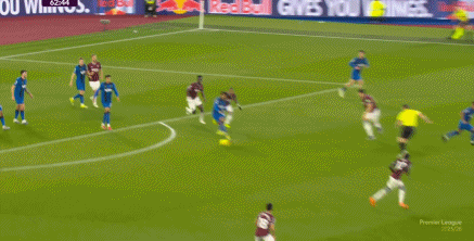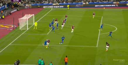 第62分鐘,西漢姆聯前場斷球,馬特烏斯-費爾南德斯打門偏出