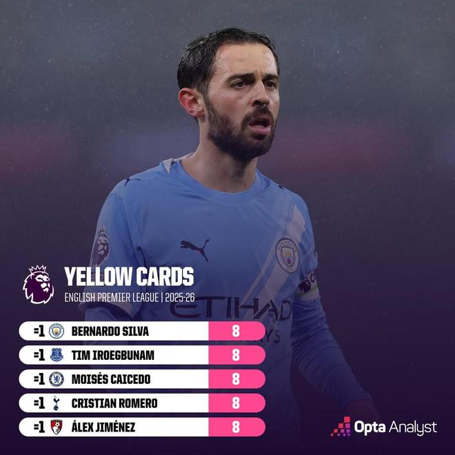 至此,這位曼城隊(duì)長本賽季英超27次出場已領(lǐng)到8張黃牌,本賽季英超沒有其他球員的黃牌數(shù)比他更多,此外,伯納多-席爾瓦曼城生涯從未有哪個(gè)賽季的英超黃牌數(shù)比本賽季更多(2023-24賽季也是8張黃牌)。