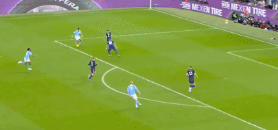 第37分鐘,曼城球員B席中路挑傳,馬爾穆什殺入禁區(qū)低平球傳中,奧賴?yán)w身鏟射打偏,錯(cuò)失帽子戲法!