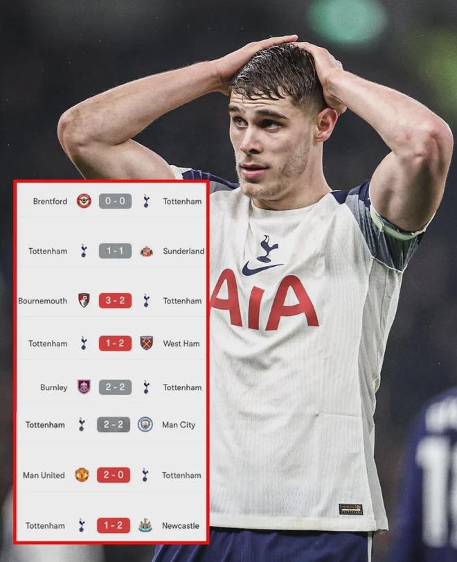 熱刺進入2026年之后尚未贏下任何一場英超比賽。